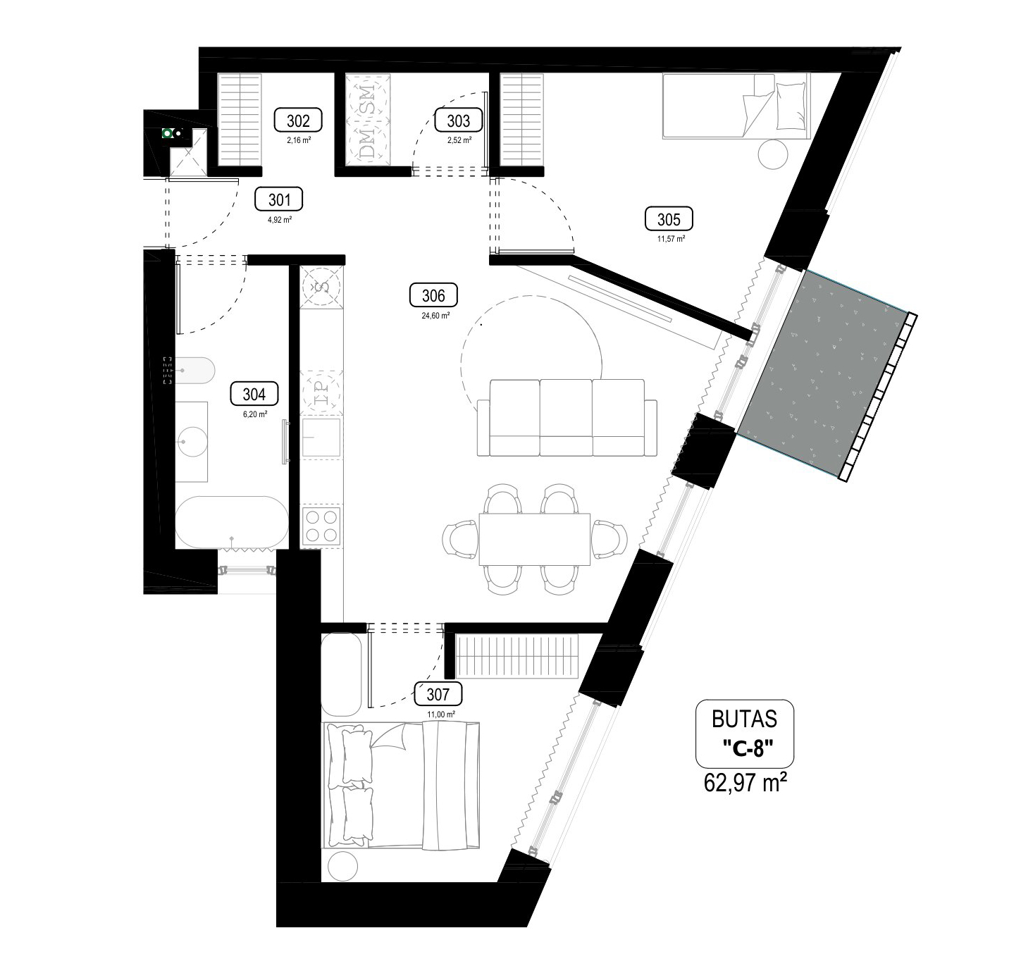 Erdvus 3 kambarių (2 miegamųjų) butas. Dideli langai ir funkcionaliai suplanuotos zonos užtikrina natūralią šviesą bei komfortą kiekviename kambaryje. Kokybiškai atlikti pagrindiniai darbai leidžia lengvai tęsti įrengimą ir kurti modernią, stilingą gyvenamąją erdvę.